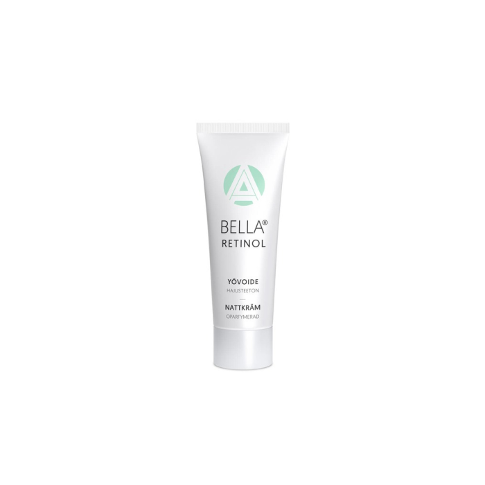 A-vitamiini auttaa silottamaan ryppyjä ja juonteita sekä vaikuttaa UV-säteilyn aiheuttamiin valovaurioihin häivyttäen iholäiskiä.Bella sisältää A-vitamiinia. Yövoiteen voidepohjan mango-, maapähkinä-, jojoba- ja riisinleseöljy hoitavat ihoa tehokkaasti. A-, E- ja C-vitamiinit säilyttävät ja tukevat ihon nuorekkuutta ja notkeutta. Hyaloronihappo tehostaa ihon kosteudensitomiskykyä.