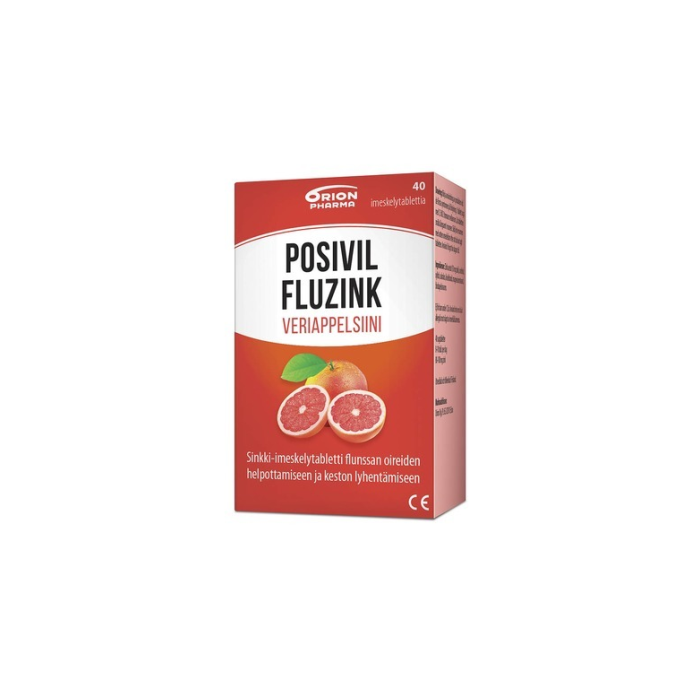 Posivil FluZink sitruuna-lakritsi, veriappelsiini ja mustaherukka -imeskelytabletit ovat imeskeltäviä sinkkiasetaattitabletteja. Ne sopivat flunssan ensioireiden hoitoon ja ohjeen mukaan käytettyinä lyhentävät flunssaoireiden kestoa. Yksi imeskelytabletti sisältää 10 mg sinkkiä- Sopiva vuorokausiannos aikuisille ja yli 12-vuotiaille on 8-10 imeskelytablettia. Nämä imeskellään rauhallisesti 1,5-2 tunnin välein.