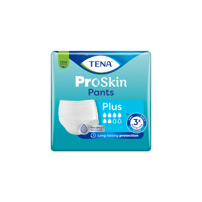 TENA ProSkin Pants Plus -suojaavat alushousut suojaavat jopa 100-prosenttisesti keskivaikealta ja vaikealta karkailulta. Ne imevät nesteen nopeasti sisäänsä pitäen ihon kuivana pitkään päivin ja öin. Luotetut kertakäyttöiset suojaavat alushousut päivittäiseen aktiiviseen elämäntyyliin naisille ja miehille.
