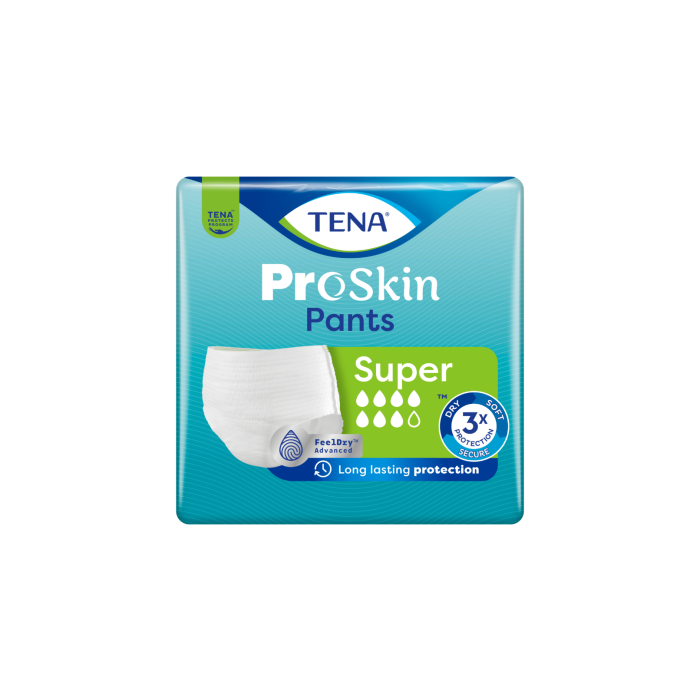 TENA ProSkin Pants Super Inkontinenssibyxor skyddar upp till 100 % mot måttlig till svår urinläckage. De absorberar snabbt vätska och håller huden torr länge, dag som natt. Dessa pålitliga engångsskydd är designade för en aktiv livsstil för både kvinnor och män.